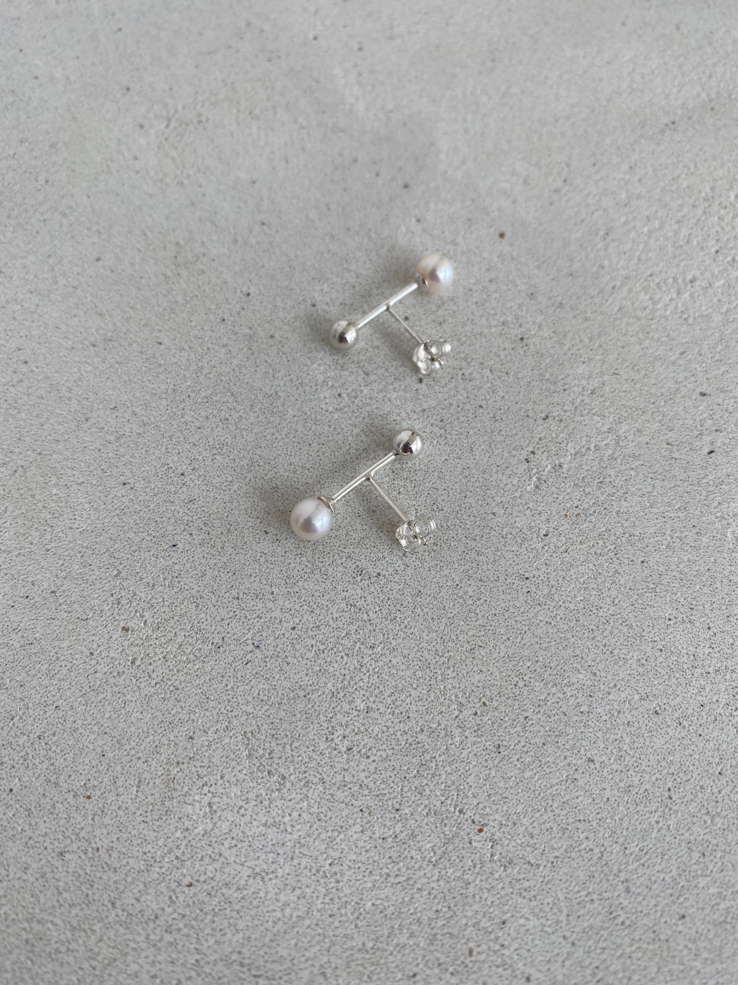 淡水パールとsilver925 のスタイリッシュなポストピアス。縦、横、斜めと、自由に着けられるのも魅力です。