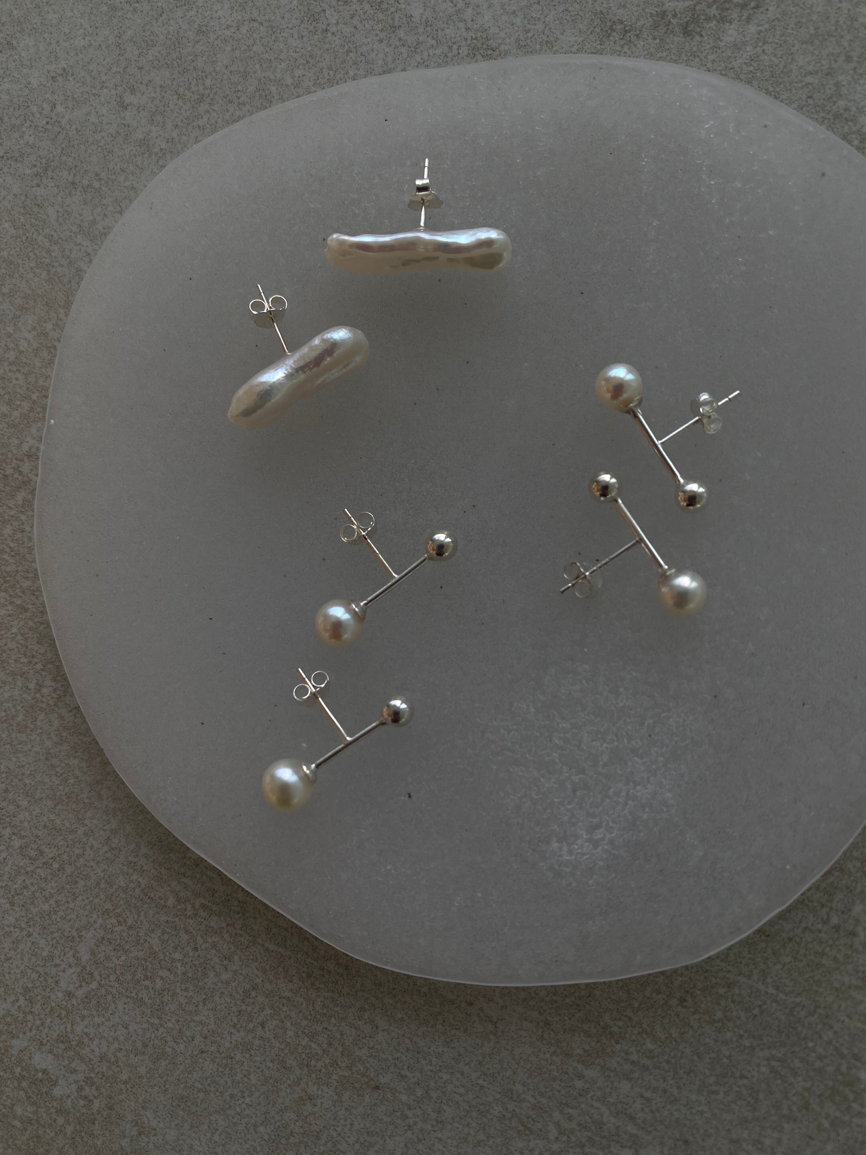 天然の淡水パール、形がそれぞれで唯一無二のピアスです。