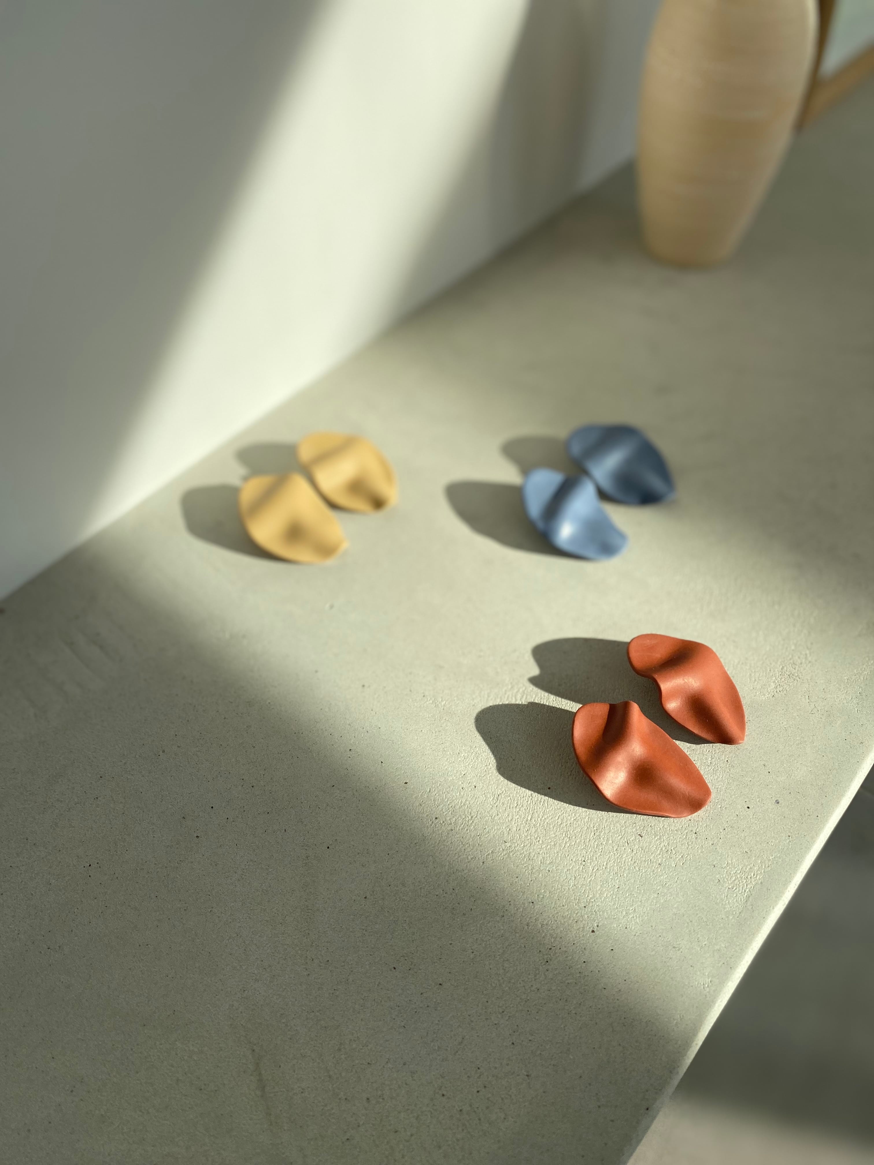 clay素材を一つ一つ手仕事でwaveの形を作り出して生まれるピアス。