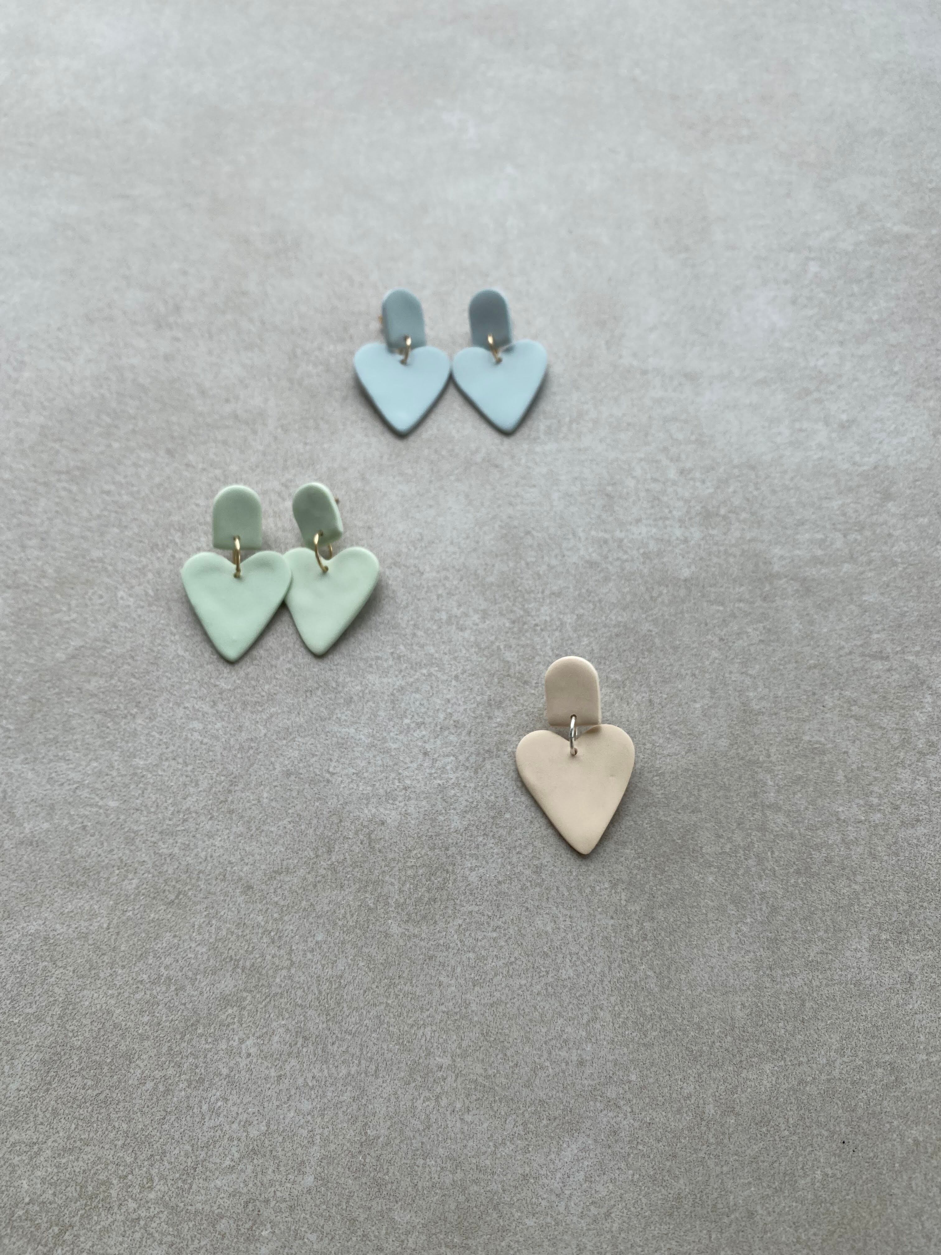 パステルカラーのClayと14kgfの相性の良い組み合わせ。薄さが野暮ったくなく洗練されたハートのピアスになっています。