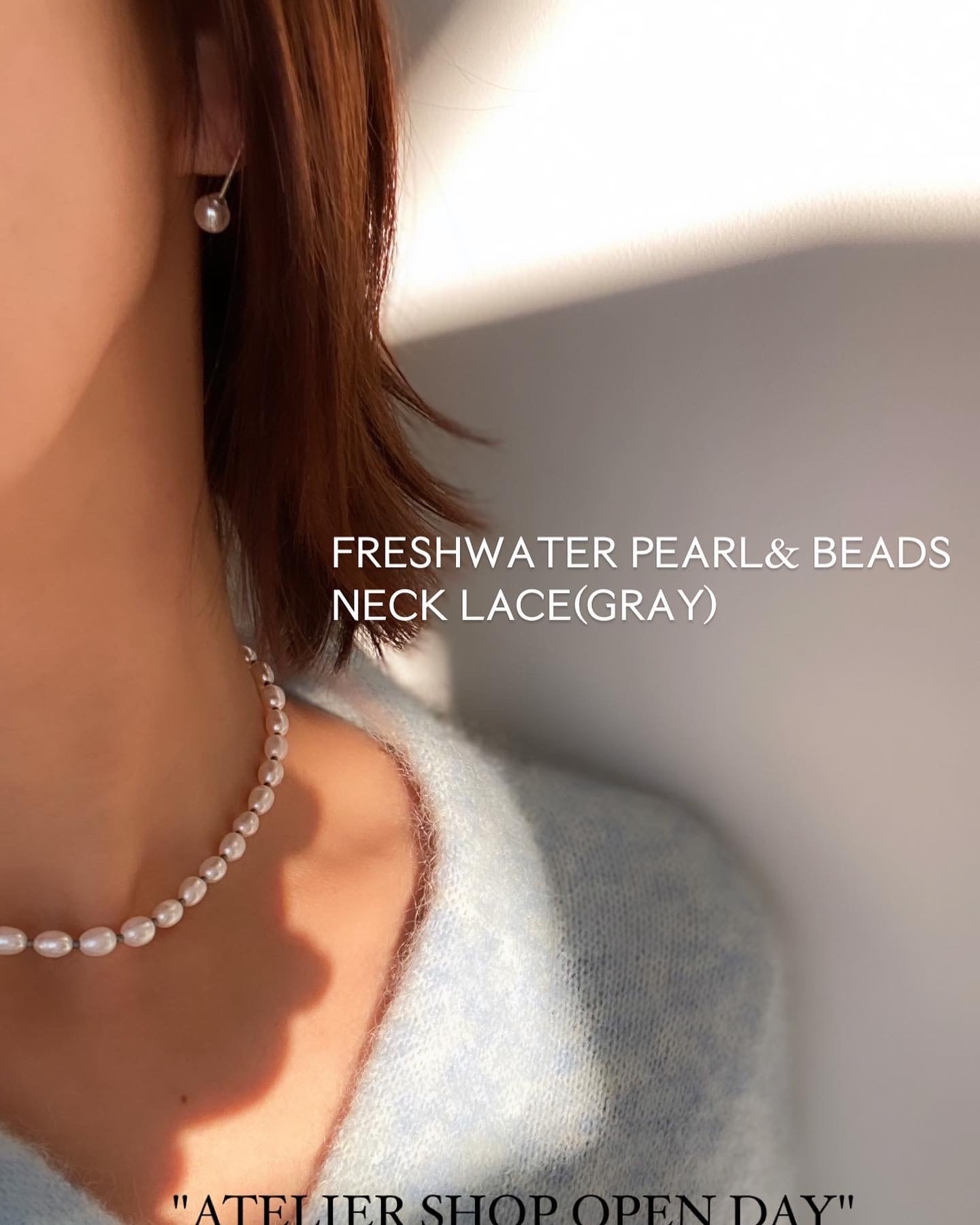 着画はgray、合わせているピアスは「silver925 x freshpearl(5mm)T pierce」です。