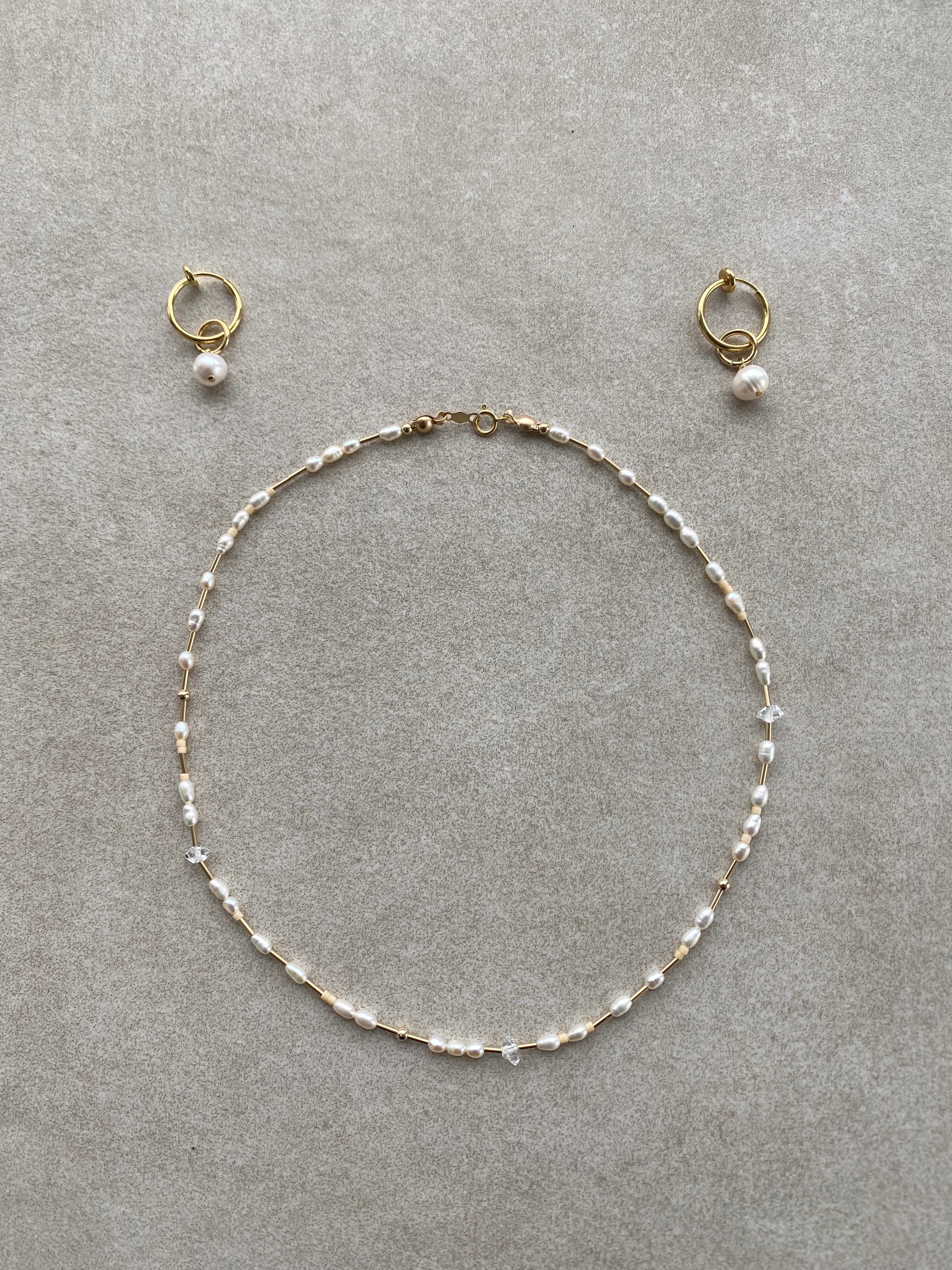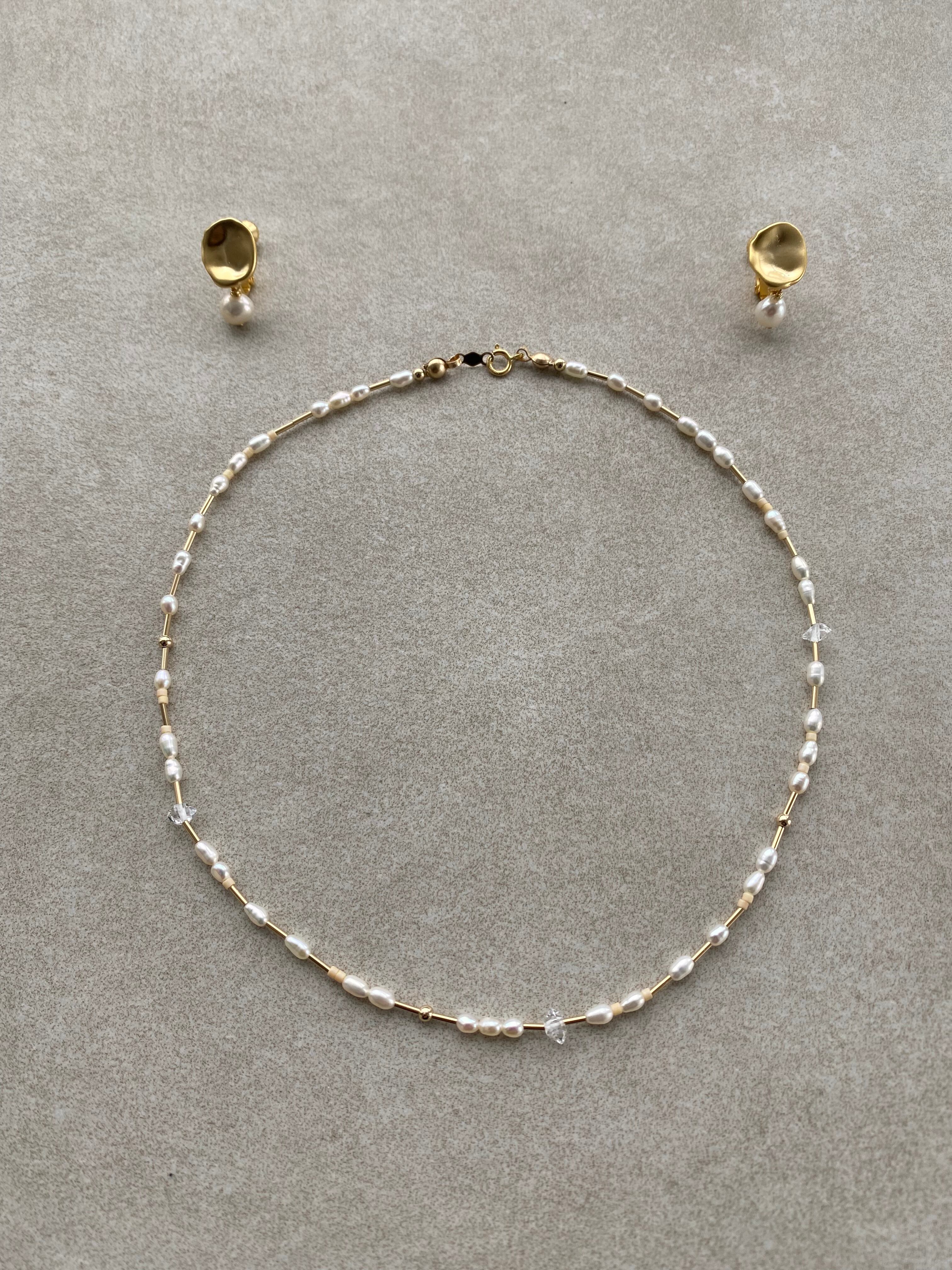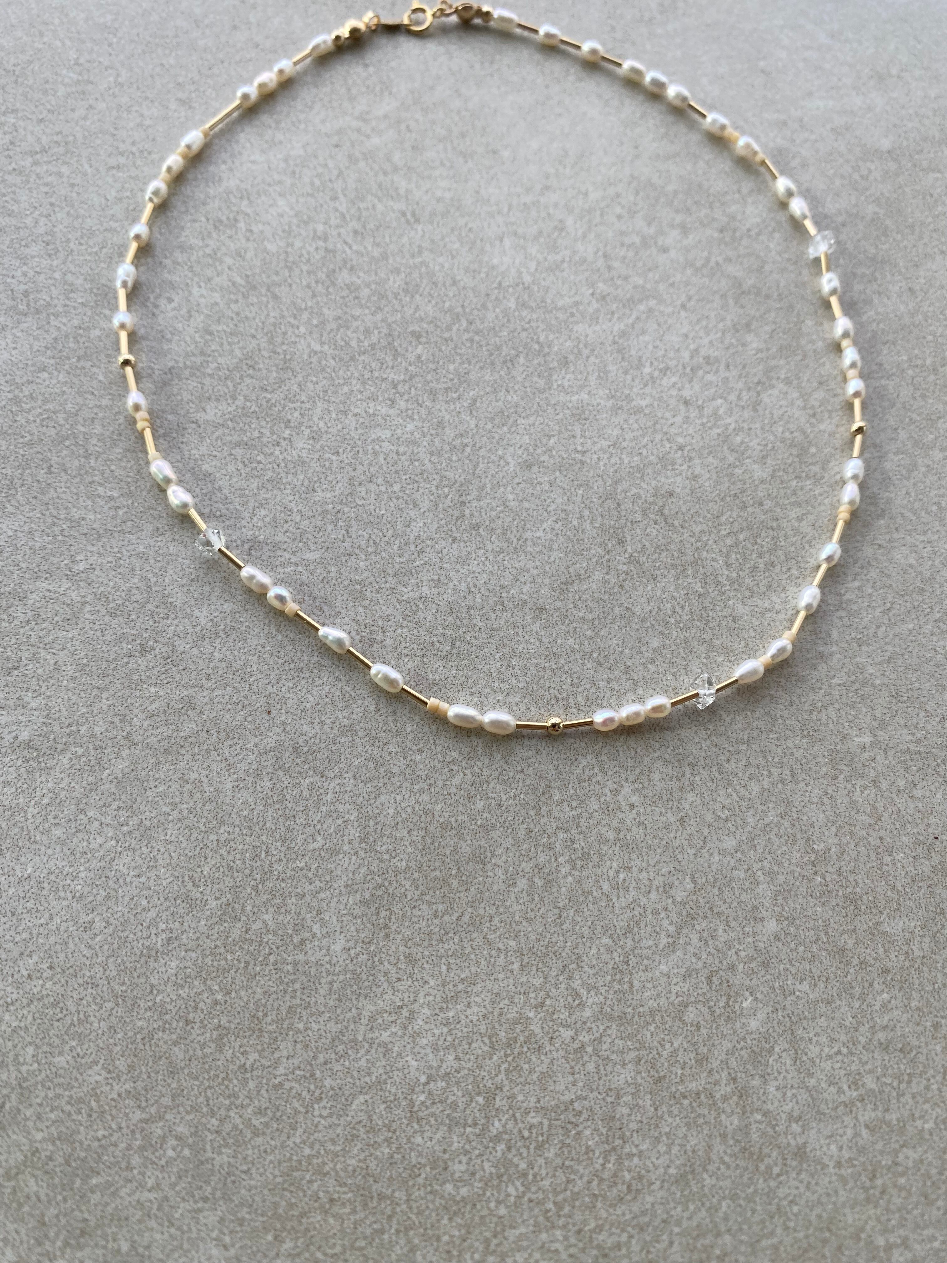 (1点限定)淡水パール&Herkimer Diamond 14k gold filled ネックレス