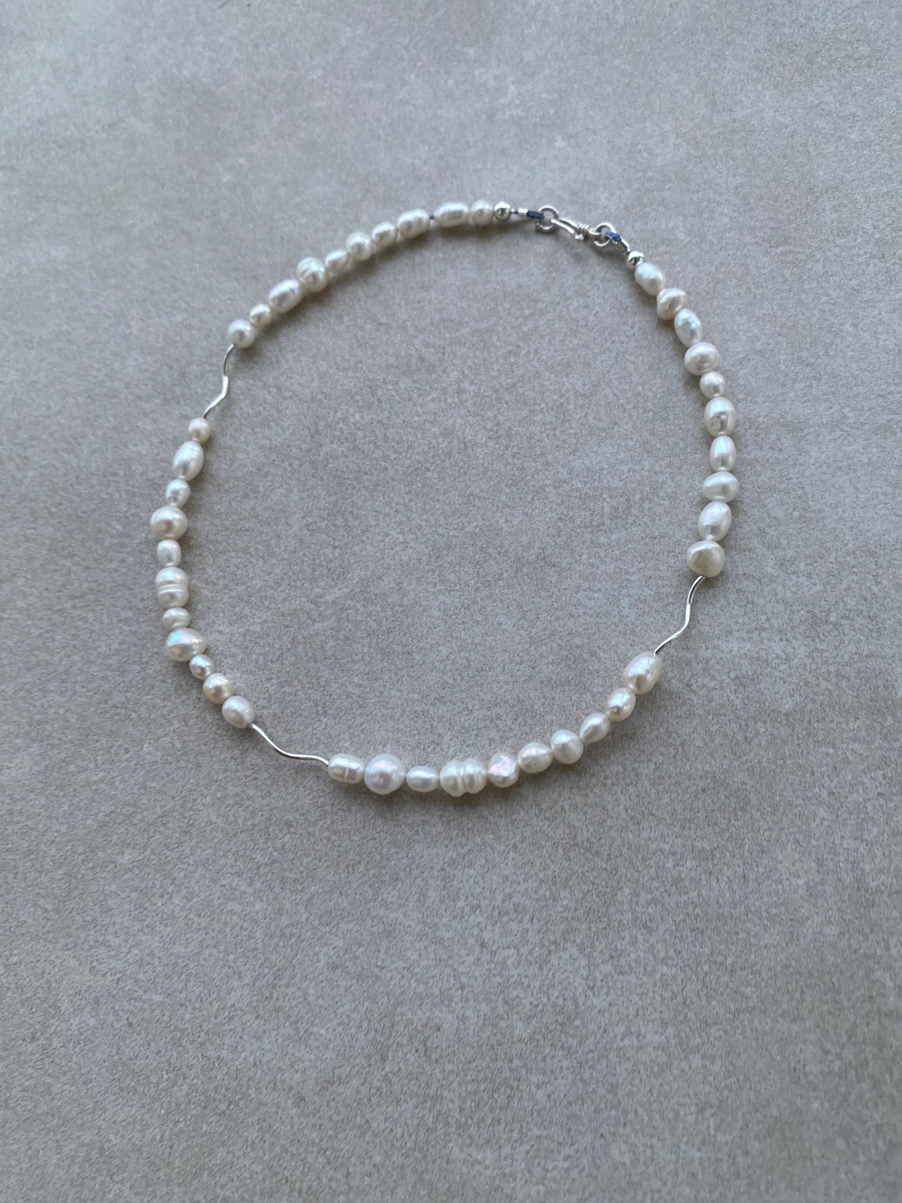 Blue silkcode x 淡水パール x silver925 ネックレス
