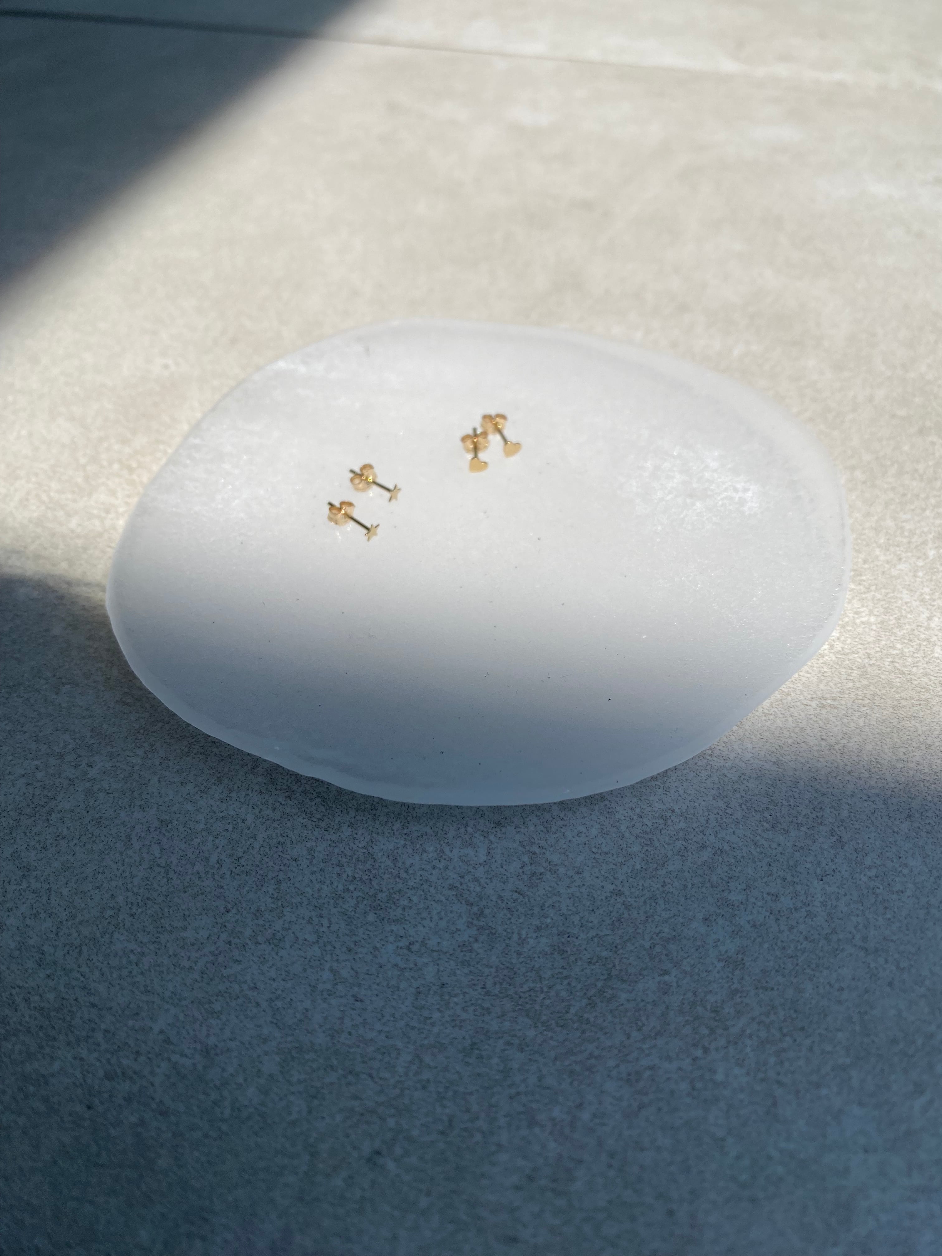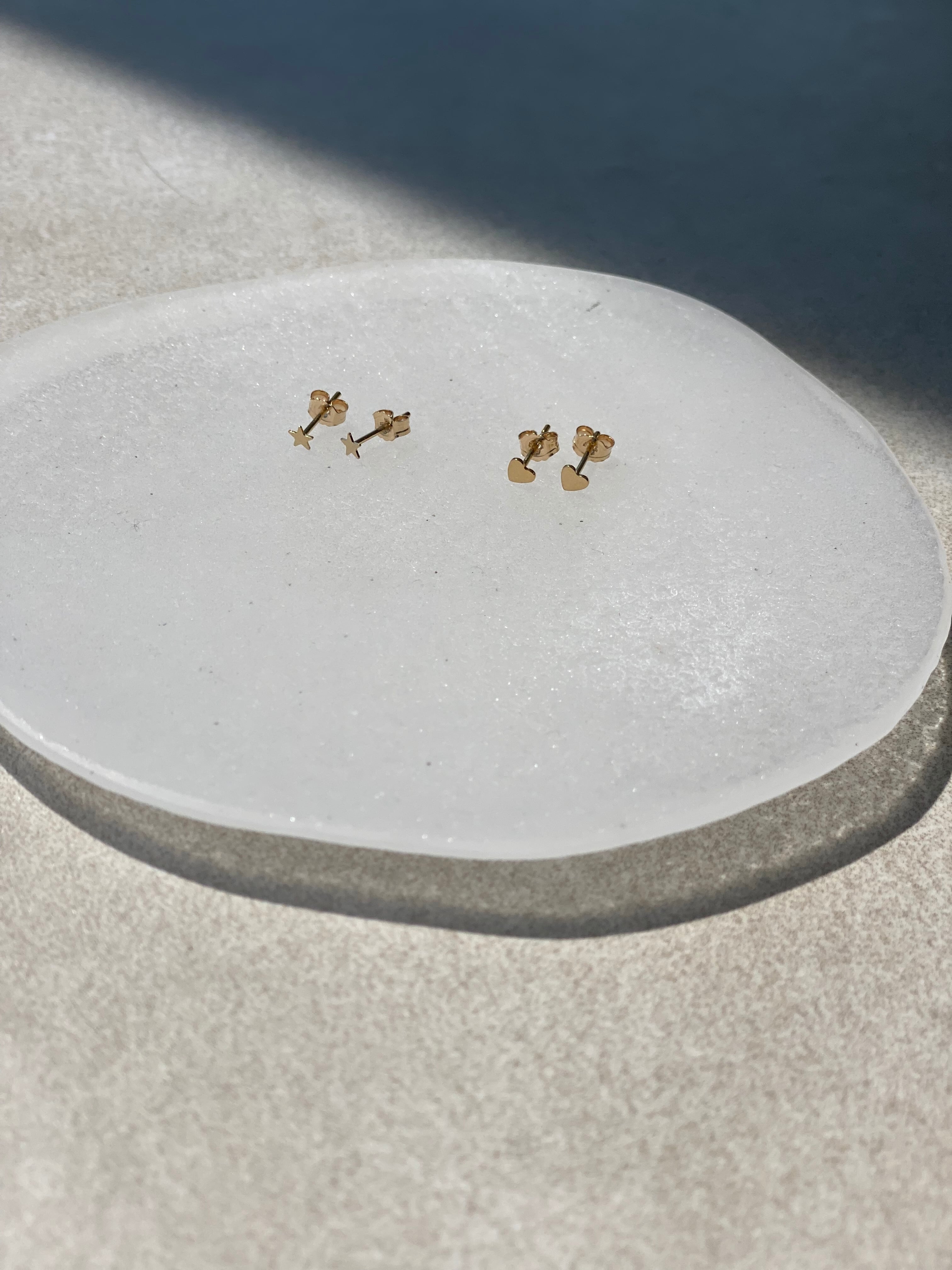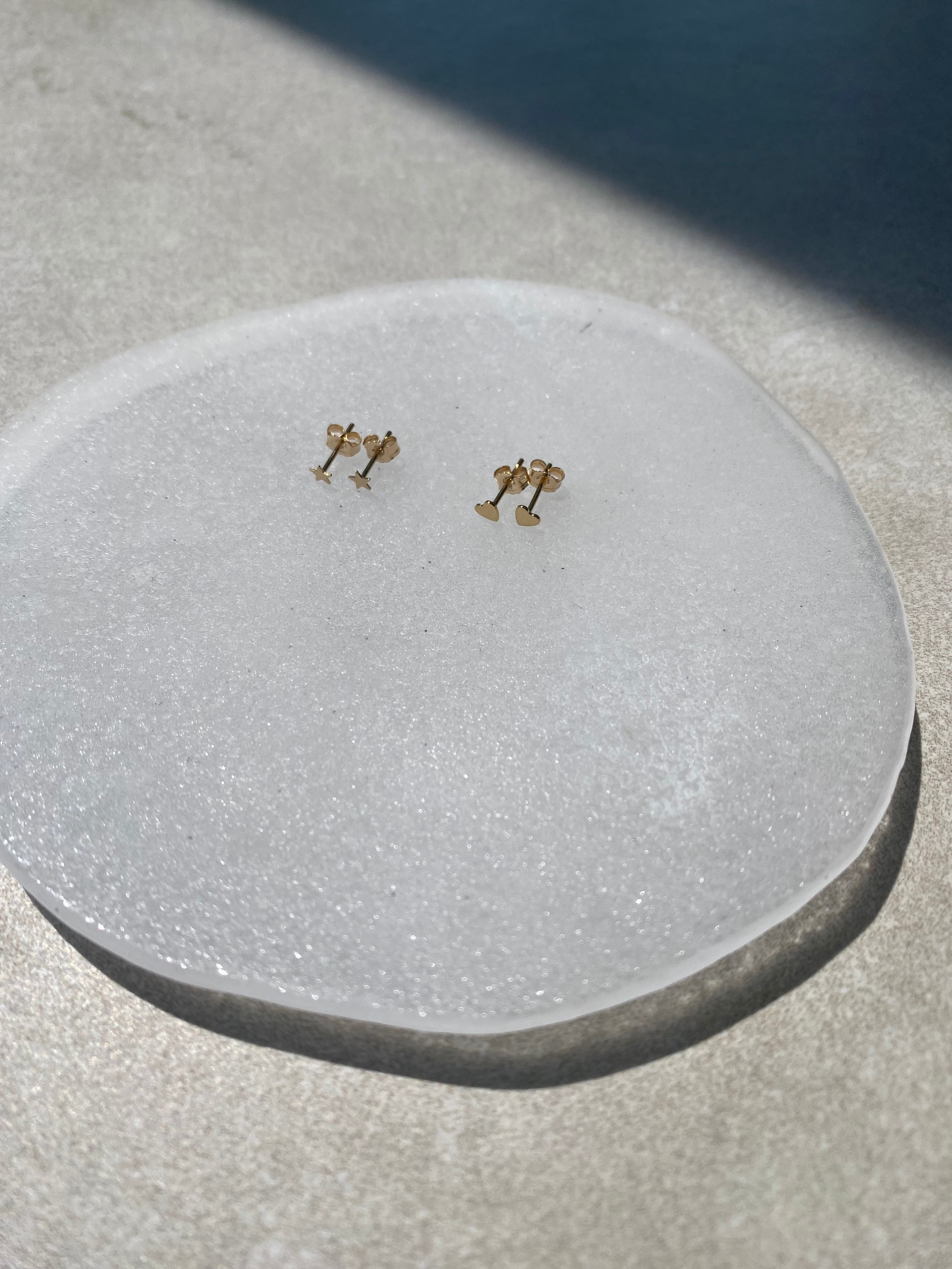ミニサイズのハート、または星の装飾が付いたゴールドフィルド(14K Gold Filled)のポストピアスです。